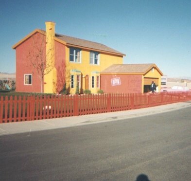 A very nice 2 story home with a fresh coat of dover white paint Stained Redwood Fence: Redwood stained fence around entire yard with a swimming pool swing Cedar Siding House