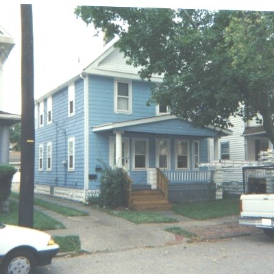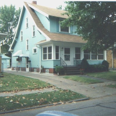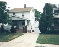 ![]() aluminum siding house-white&green trim Garfield Hts edge park home Grey wood siding home